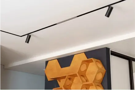 З трековими світильникамиТрекові системи освітлення для натяжних стель - гарне рішення щоб створити у вашому приміщенні різноманітні світлові сцени. Встановлємо всі типи систем: вбудовані, накладні та магнітні світильники. -