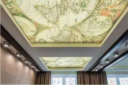 Світові стеліНатяжна стеля зі світлодіодним підсвічуванням усередині через світлопропускне полотно. М'яке та ровномірне світло яке освітлює всю стелю. Використовується в якості основного освітлення.