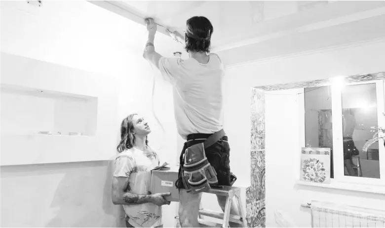 Сначала проводятся все коммуникации, затем подготовка стен, покраска, обои. Затем мы производим замеры проектирования и можем устанавливать потолок. После потолка делаем уже пол.