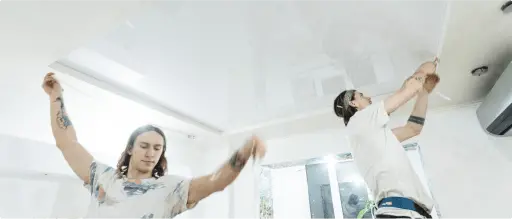 Равномерная натяжка холста.Полотно фиксируется на профиле, растягиваясь по всей площади потолка для идеального результата. -