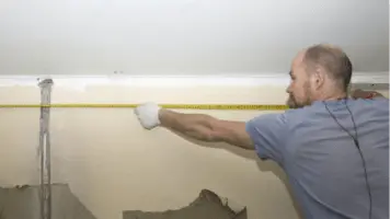 Разметка для крепления профиля по периметру помещения.Производится точная разметка для установки профиля, чтобы обеспечить ровное крепление конструкции по периметру стен. -